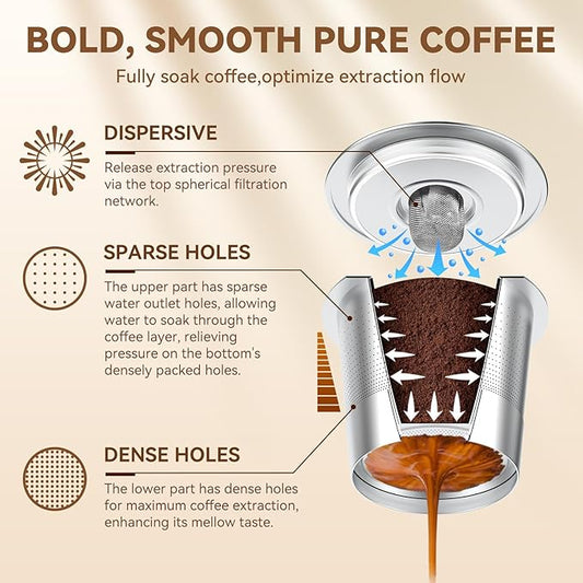 Reusable K-Cups for Keurig: Upgraded Dual-Mesh Reusable Coffee Pods for Richer Coffee NO Grit - Universal Stainless Steel Coffee Filter for Keurig 1.0 Coffee Maker, Eco-Friendly